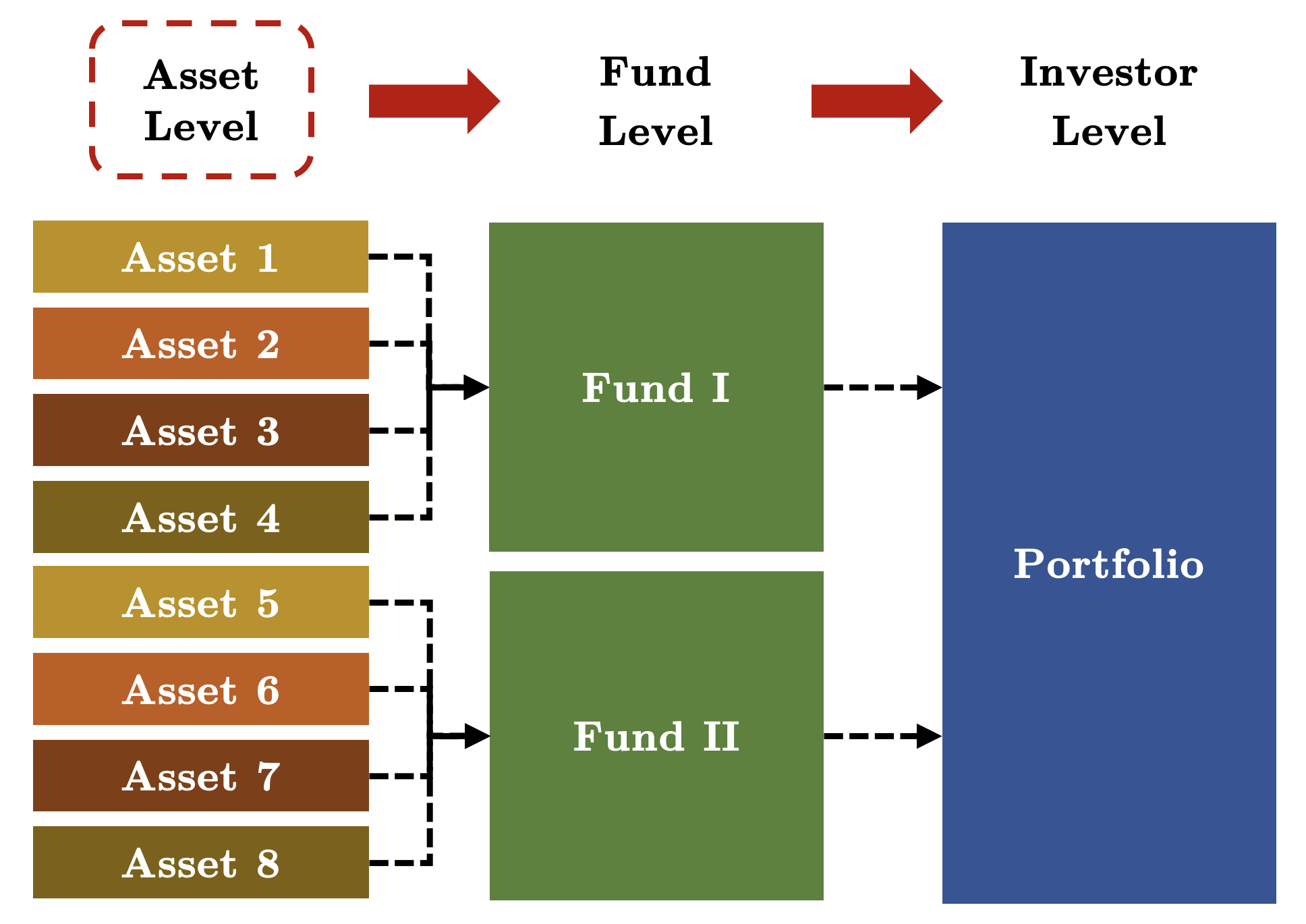 Asset level climate or nature value at stake is the negative NPV impact of physical and transition climate or nature risks plus the positive NPV impact of climate or nature related opportunities for asset. A translation to the fund level would then follow using economic weights of all fund assets and their CVaS and NVaS, and subsequently to the manager level. Once hazards are classified consistently across assets, exposures become comparable across assets and funds. Governance improves because functions operate from a shared classification, and outputs become decision useful for pricing, portfolio steering, and risk appetite.