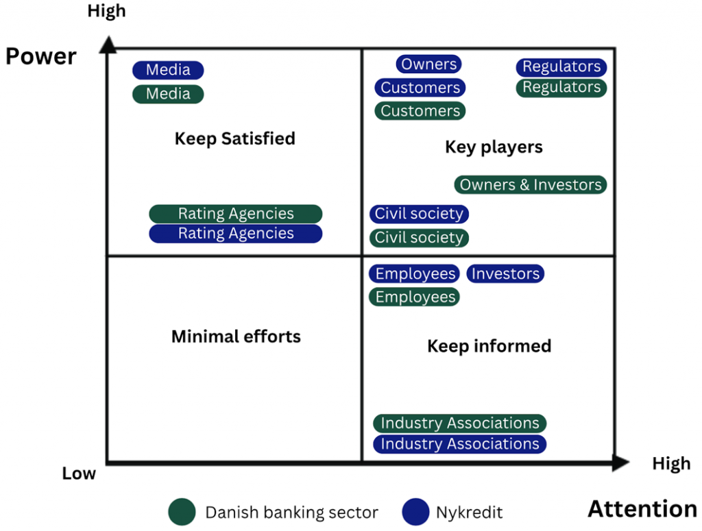 Illustration 1: Power/Attention Matrix of Influence from Stakeholders on Nykredit and Peers